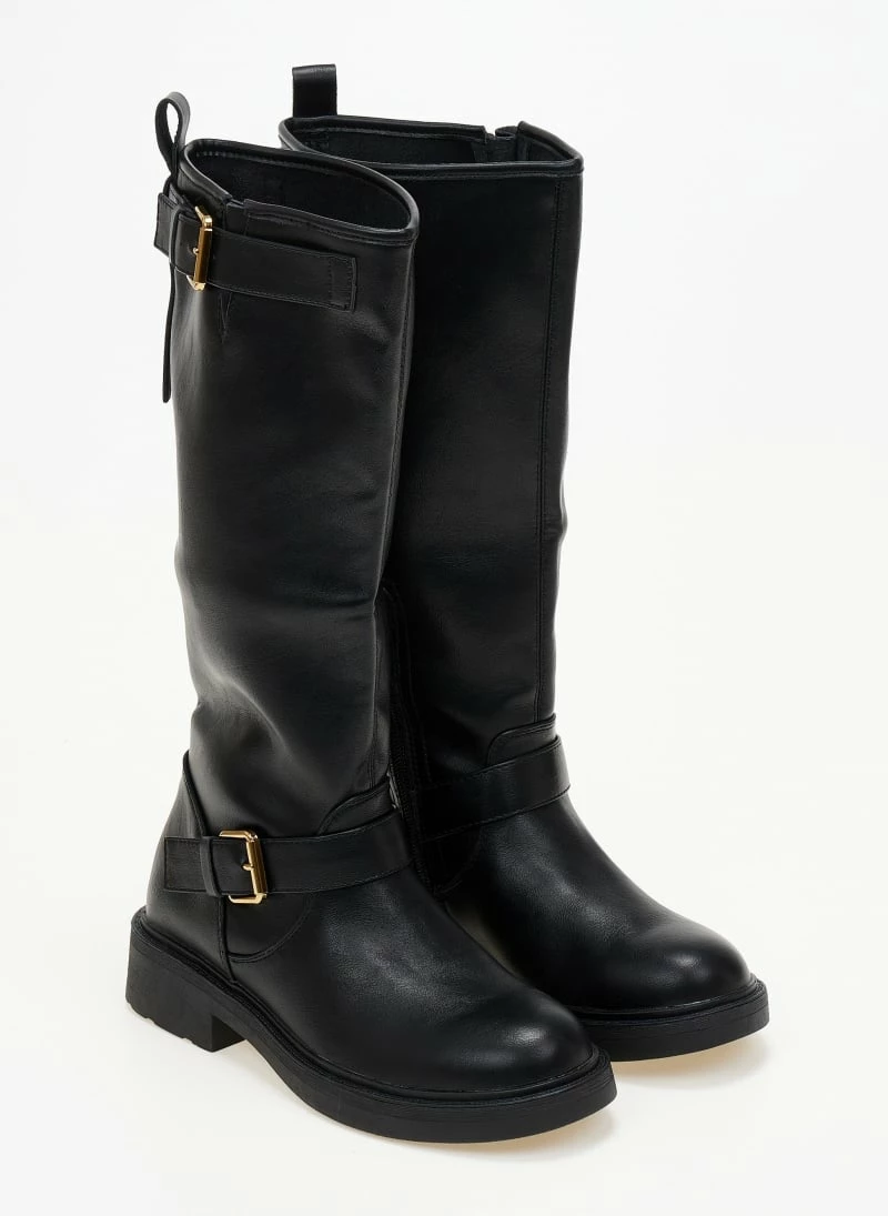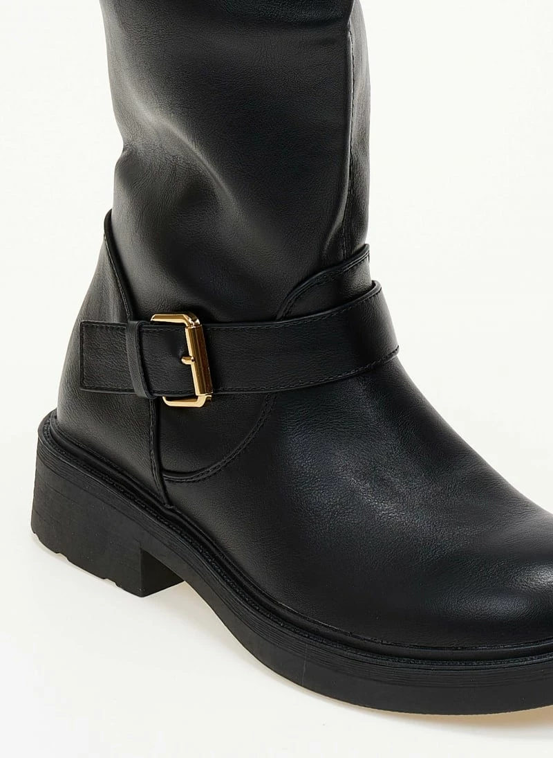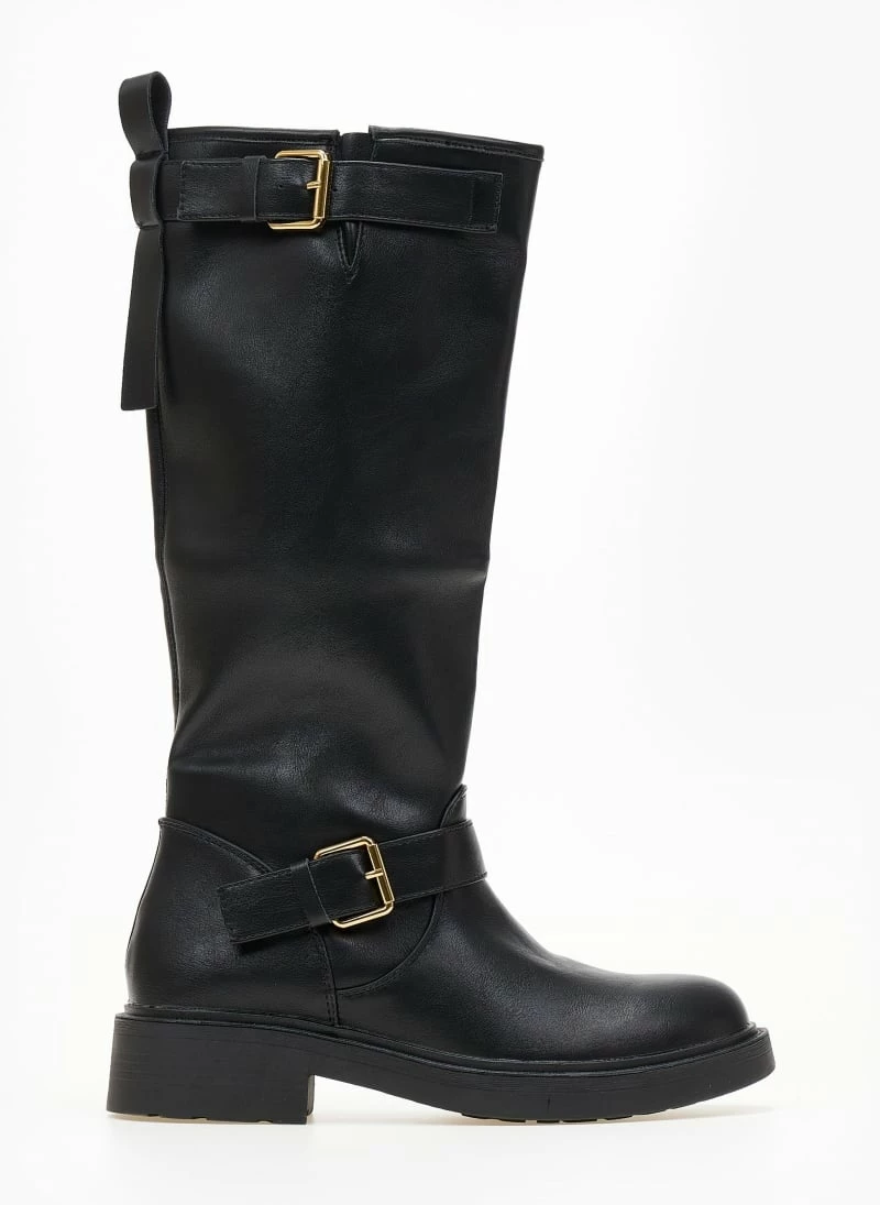 Casual μπότες σε στρογγυλή γραμμή. Διαθέτουν δύο ζωνάκια ,στο κουντεπιέ και στο τελείωμα. Έχουν φερμουάρ εσωτερικά στο μισό ύψος της μπότας.
