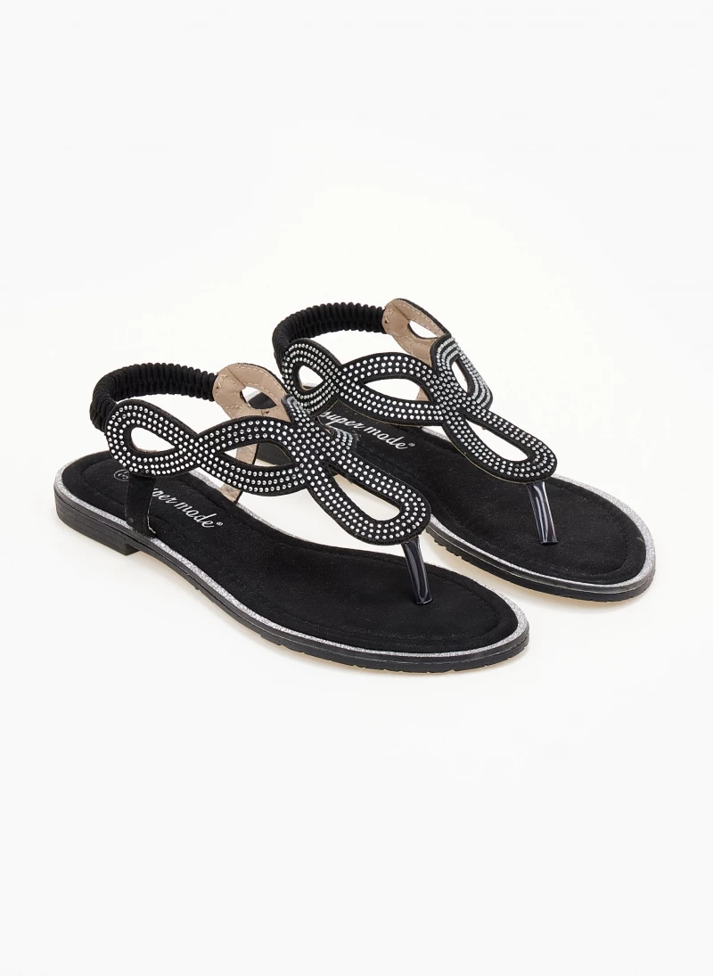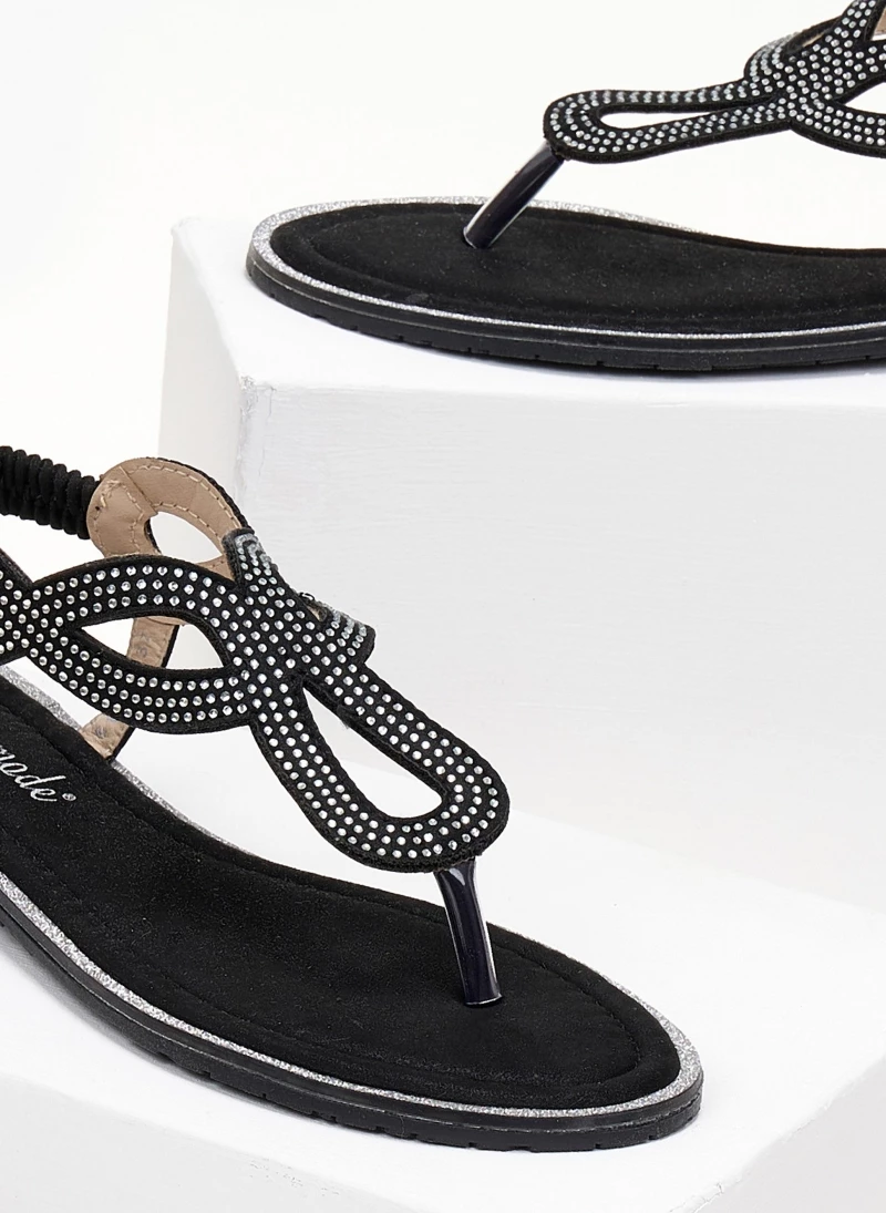 Σανδάλια comfort με μικρά strass. και διάτρητο σχέδιο. Έχουν glitter λεπτομέρεια περιμετρικά της σόλας. Ελαστικό λουράκι στο πίσω μέρος για καλύτερη εφαμογή.