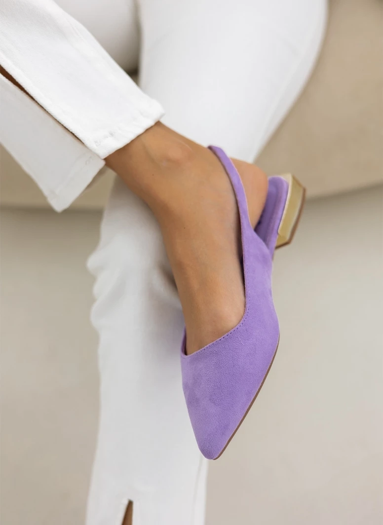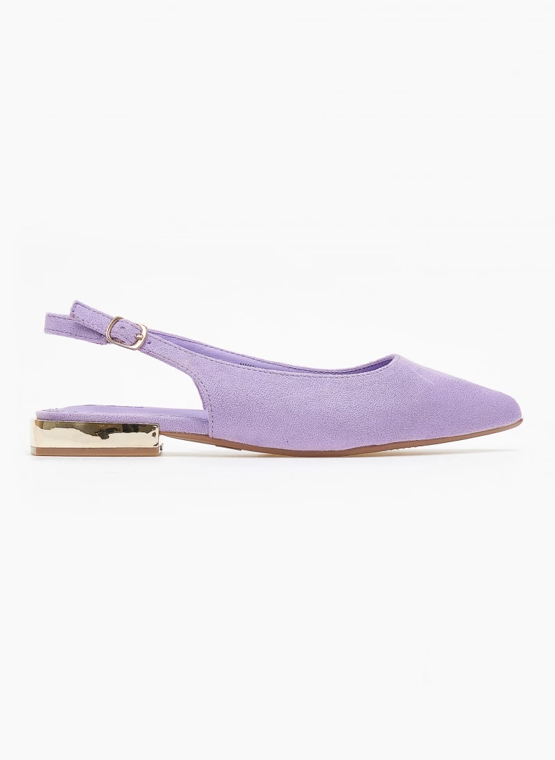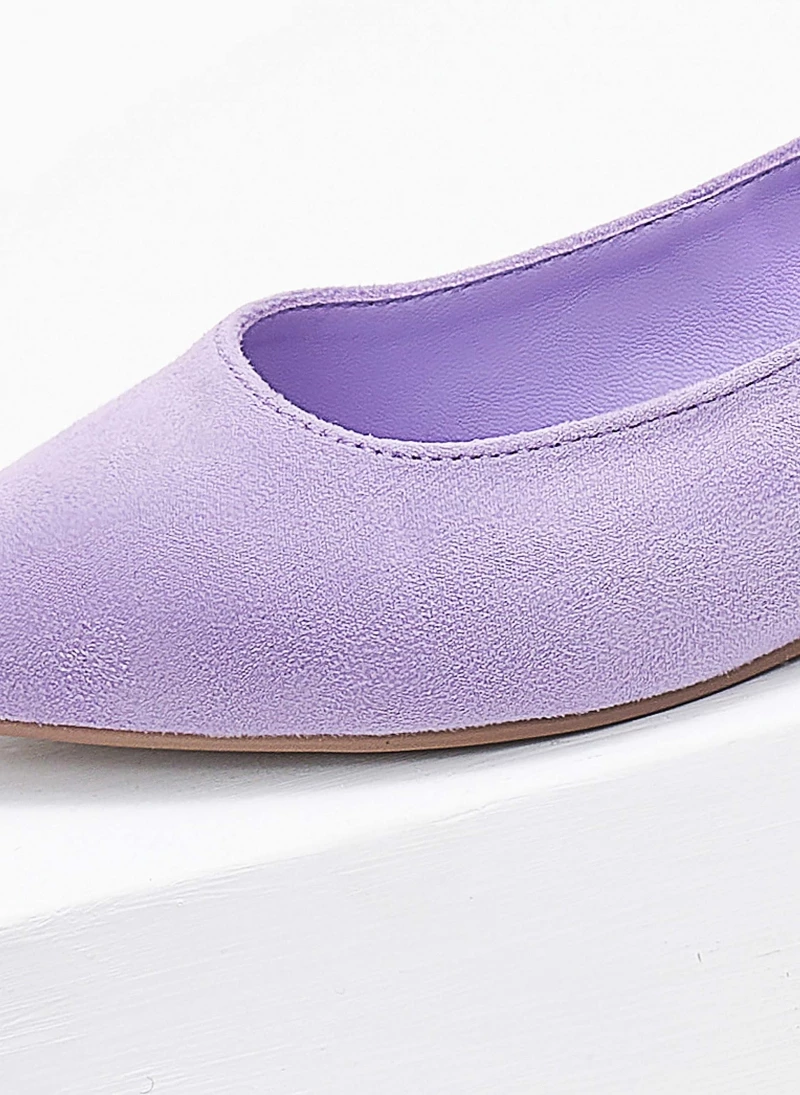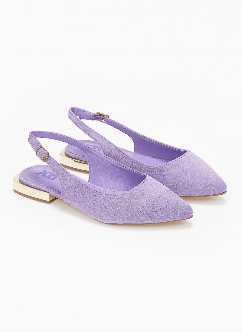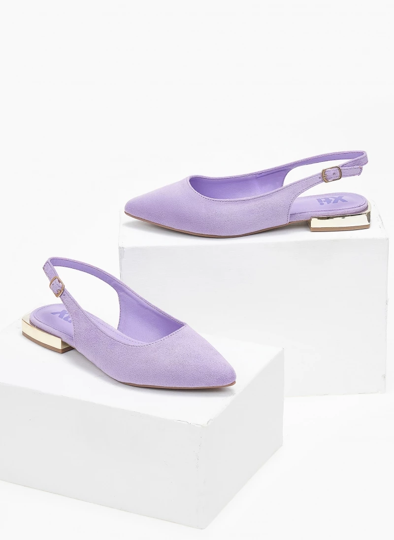 Μπαλαρίνες Xti suede μυτερές. Δένουν με λουράκι στο πλάι. Έχουν τετράγωνο μεταλλικό τακούνι. Peta vegan approved.